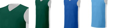 100% EXTREME MICROFIBER CATIONIC COLORFAST POLYESTER WITH MOISTURE MANAGEMENT FIBERS OVERSIZED "PRO-CUT" WITH SLIMMER SHOULDER WIDTH TWO COLOR, DOUBLE PLY, FULLY REVERSIBLE JERSEY OPEN BOTTOM FOR PRINTING AVAILABLE IN SIZES: XS-XL